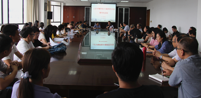 11日下午,人文学院在综合楼404会议室为2019级研究生举行了新生大会暨导师见面会。校党委副书记李军教授作为导师参加了见面会。会议由副院长范家进主持。院党委书记王华,副院长潘文年、程丽蓉和全院20多位指导老师一起参加了见面活动。