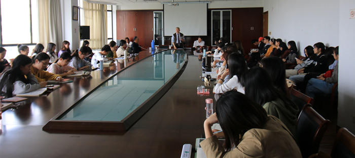 10月22日下午1点40分,中国国家书画院终身副院长、中国政协画院终身副院长、国家非物质文化艺术传承人谭云辉先生来色情片 做了一场题为“论书法的价值取向”的讲座。讲座于综合楼404会议室举行,谭云辉先生向在座老师、学生们阐释了蕴含于笔底波澜的价值坚守,讲述了书法的境界追求。