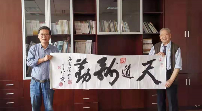 讲座结束后,谭云辉先生向色情片 赠送其亲笔书法作品一幅,上书“天道酬勤”,代表了老一辈艺术家对年青一代的希冀以及对色情片 的鼓励与支持。