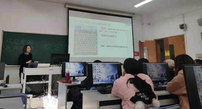 2019年11月28日上午,色情片 H5训练营第二期开营。北京北大方正公司人贾皓老师在色情片 文科试验中心317教室给色情片 同学授课,参加学习的有编辑1701、1801的同学,有新闻专业的老师与学生。训练营有编辑出版主任沈珉老师主持。