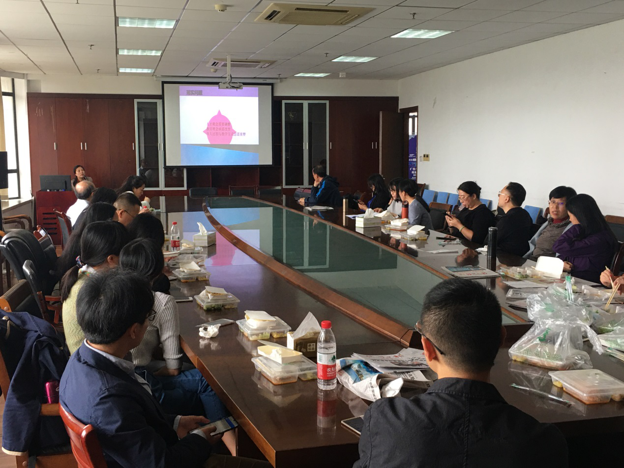李艳梅老师首先汇报了9月16日至9月19日赴苏州西交利物浦大学参会学习的具体情况。本次学习是学校教务处安排,由李艳梅和曾莉芬两位老师代表人文学院参加,西交利物浦大学主办的“第八届研究导向型教学研修班”。三天的会议安排十分紧凑、充实,西交利物浦大学执行校长席酉民作了题为《西浦“以学生为中心、研究导向型、融合式教育”》的主题演讲,之后由10余位不同专业教授不同课程的西浦老师进行了教学创新方面的汇报。会议全部内容从学校的人才培养目标出发,以研究导向型教学理论为指导,落实到课程的研究导向型教学创新实践上。汇报人有校长、教授、大四学生,各怀绝技;课程类型,既有数学、物理、健康与环境科学,也有土木工程、城乡规划、公司财务、专业英语;培训形式,有专题讲座、专题研讨、案例分享、工作坊、分组讨论、海报展示、结业仪式。参会者受益良多。