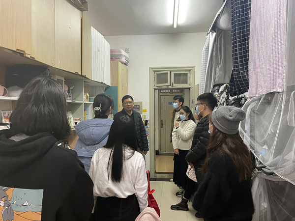 在毕业生寝室,郑书记对同学们的毕业论文、升学就业等情况进行了了解,他勉励同学们克服疫情影响,要不畏困难、迎难而上,积极准备考研复试、求职就业等。他表示,同学们在学习生活中遇到困难要及时向年级辅导员、专业老师反映,学院老师会为同学们的成长成才保驾护航。