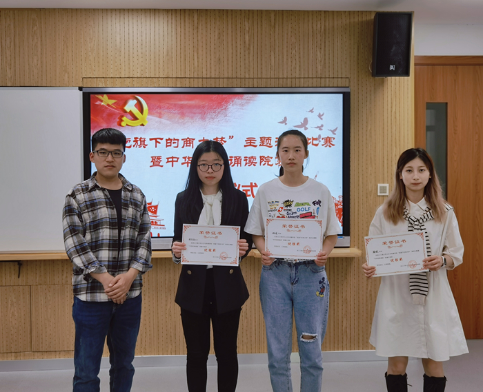 在建党百年之际,为了激励更多青年团员通过学习党史更好地感受百年历史的厚重底蕴与内涵,传承红色基因与红色记忆,4月21日下午,人文学院举办“党旗下的商大梦”主题演讲比赛暨大学生中华经典诵读竞赛院赛。学院教师李华金、吴欣、马琼,团委书记黄凡,辅导员徐玉怡、占佳聪出席活动,并担任评委。活动由学院学生会李旻同学主持。