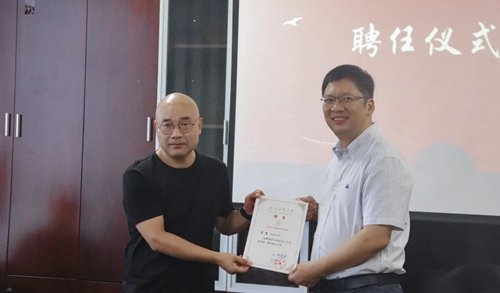 图为郑晓东书记为杭州商学院陈国利副教授颁发合作导师聘书