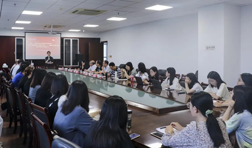 图为徐少丹老师(右一)发言