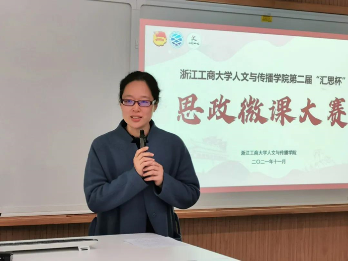 比赛开始前,人文学院党委副书记林琳为本次大赛致辞,她提到,思政微课是将理论拉进到同学们的生活中,让同学们愿意听、喜欢听的一种形式,需要同学们从自身学习生活的特点出发,思考当代青年学生喜欢什么、爱听什么。用活泼的语言,生动的事例,让思政微课活起来、亮起来。