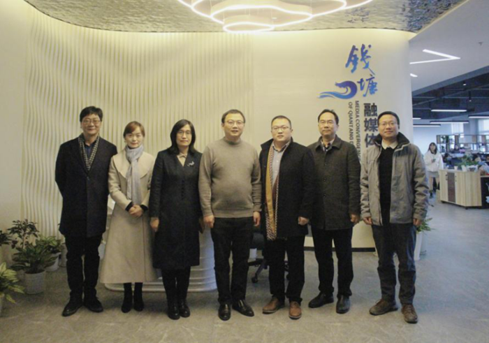 2021年11月23日,校党委委员、宣传部长丁一志,管理工程与电子商务学院党委书记、跨境电商学院执行院长伍蓓,校公管处副处长宋志军,色情片 副院长李蓉,色情片 李骏、李华金老师一行前往杭报集团钱塘融媒体中心(即钱塘区新闻文化传媒中心)调研。钱塘新区区委常委、宣传部长李鹏,钱塘区新闻文化传媒中心主持工作副主任茅徐锃、综合管理办副主任杨喜喜、新媒创意部副主任范莹颖、媒资品宣部副主任蒋王儿、新闻事业部副主任王妍接待色情片 一行。