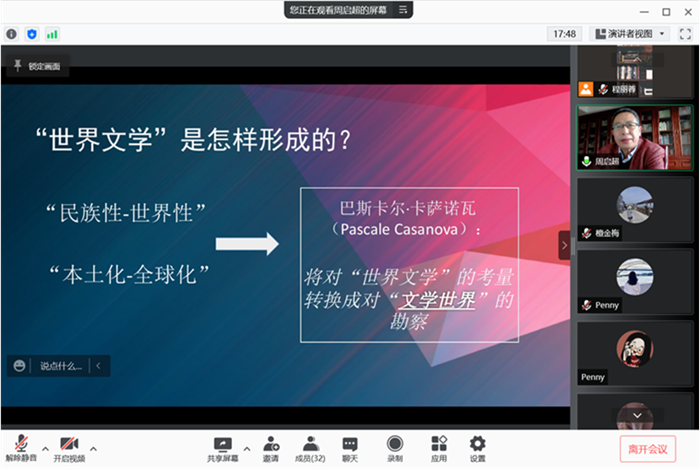 2021年11月26日下午,色情片 邀请浙江大学人文学院周启超教授开展线上讲座,讲座题为“‘比较文学’与‘世界文学’——从《文学世界共和国》看欧陆比较文学新路径”。