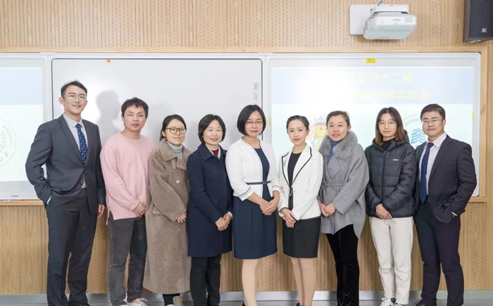 从左到右:孙玉海老师、邓弋威老师、孙金辰老师、袁伟菊主席、陆青老师、杨艳老师、裴蓓副处长、戴雨老师、李修琳老师