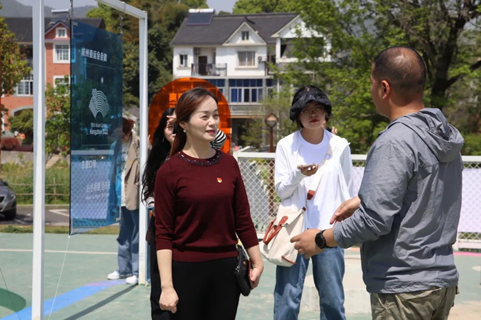 调研过程中,师生们看到,不管是在茶园小道还是农家园舍,随处可见现代雕塑屹立其中,还有艺术家正在进行艺术创作的身影,现代文明与农耕文明在这里得到了机结合。村党总支部委员林彬炜介绍,长埭村始终坚持党建引领,将“茶+艺术+数字”相融合,杭州唯一以手工创作为特色的创意园区“白桦崊”就坐落在这里,长埭村致力于打造“长埭创意文化村”,切实将物质富裕与精神富裕相结合。