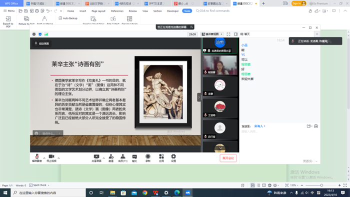 讨论提问环节,龙教授与师生一起就图像叙事、“艺格敷词”与小说描述的关系等问题进行了深入地探讨,同学们在本场讲座中对“艺格敷词”有了更深入的了解,收获颇丰。