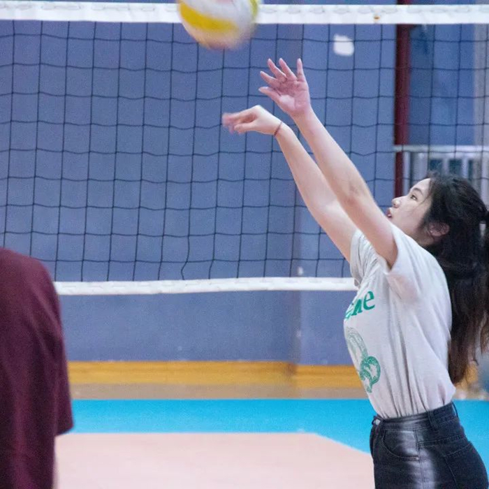 比赛开始,我方率先开球,很快拿下一分,然而经济学院也不甘示弱,扳回一分,比分十分胶着。这样的状况一直持续到4:5,因为对方队员的强势发球,我们连丢4分。然而后半场,我方队员顶住压力,逐渐进入状态,发球有力,传球默契,在面临强敌的情况下仍保持冷静,马上以小比分优势领先于经济学院。虽然随后因为球未过网等失误丢失了几分,但我方球员实力发挥稳定,顶住了对方的强烈进攻,第一局最终以我方25:21结束。
