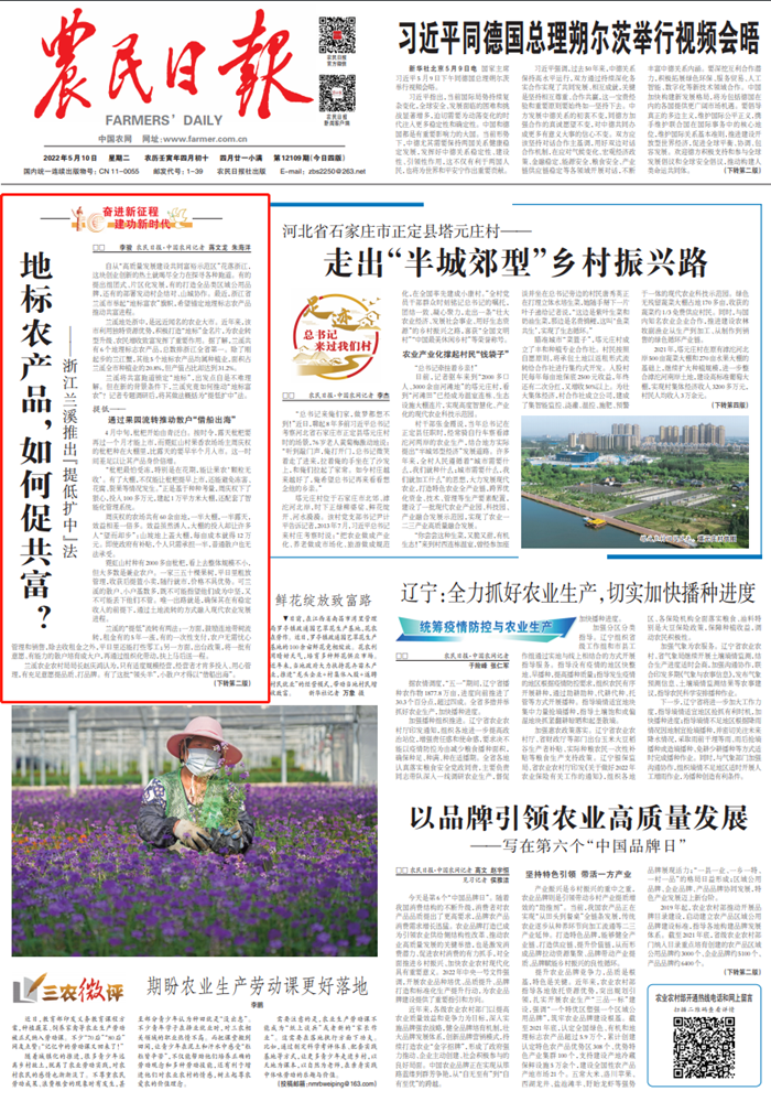 人文学院李骏教授为第一作者采写的《地标农产品,如何促共富——浙江兰溪推出“提低扩中”法》(全文3600余字)在中央媒体《农民日报》5月10日头版头条刊发。5月11日,省委领导对该文做出肯定批示指出:“兰溪经验可以推广。”