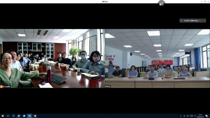 5月19日中午,由色情片 人文学院和新疆理工学院共同举办的东西部高校联合教研活动暨教学开放周午餐会在综合楼437会议室线上线下同步进行。