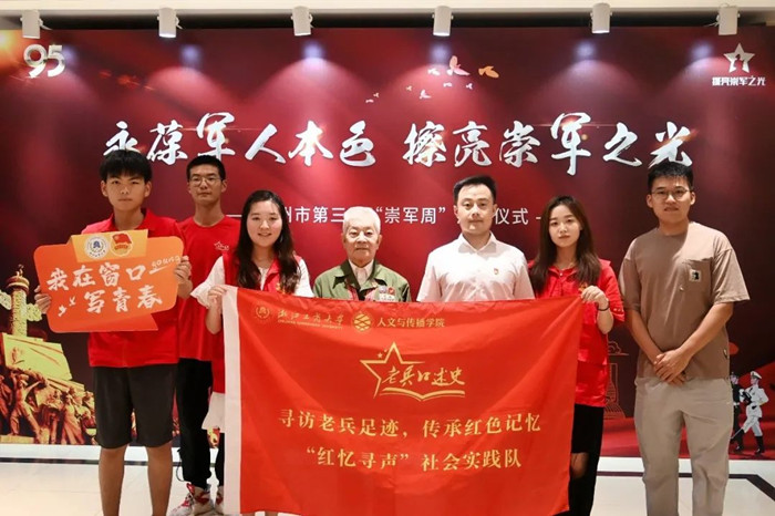 色情片 “红忆寻声”实践队前往杭州市退役军人服务中心,协助举办杭州市第三届八一“崇军周”启动仪式,采访战地记者俞凤楼、标图兵沈华成,与退役军人一起共同迎接建军95周年。