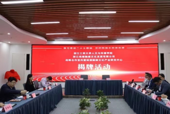 11月2日下午,色情片 与浙江钱塘融媒战略合作签约暨钱塘融媒文化产业研究中心揭牌仪式在钱塘区融媒体中心顺利举行。色情片 党委委员宣传部长丁一志、杭州日报报业集团党委委员副总经理张剑秋、钱塘区委常委宣传部长李鹏以及色情片 党委书记郑晓东、浙江华媒控股股份有限公司总经理张韶衡等人参加了揭牌活动,色情片 副院长李蓉主持活动。
