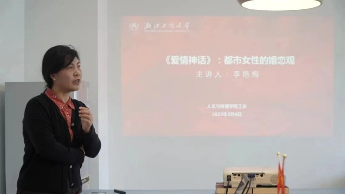 春暖花开,万物向阳,一年一度的妇女节来临之际,人文学院分工会举办“《爱情神话》:都市女性的婚恋观”座谈会,中文系李艳梅老师主讲。座谈会邀请学院党委书记鲍伟出席并致辞,向学院女教师致以节日的问候。