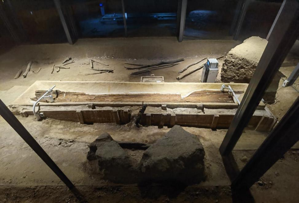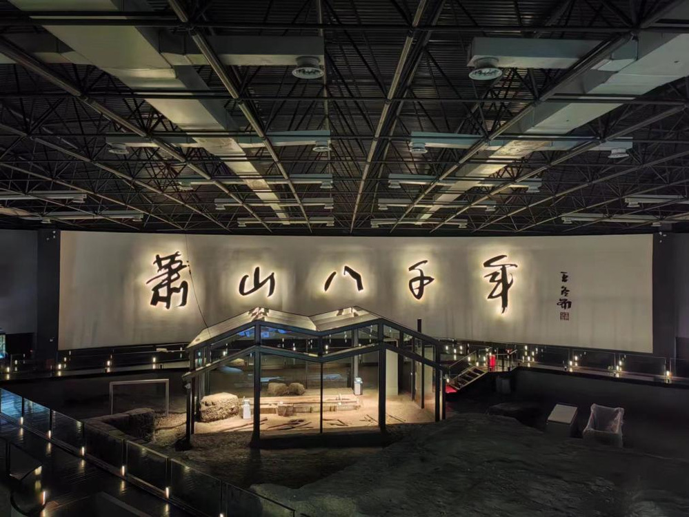 进入博物馆后,马老师首先领大家来到跨湖桥遗址原址保护展示厅。此处空阔非凡,进门便见“萧山八千年”的醒目大字,足以展现跨湖桥遗址深厚的历史底蕴。