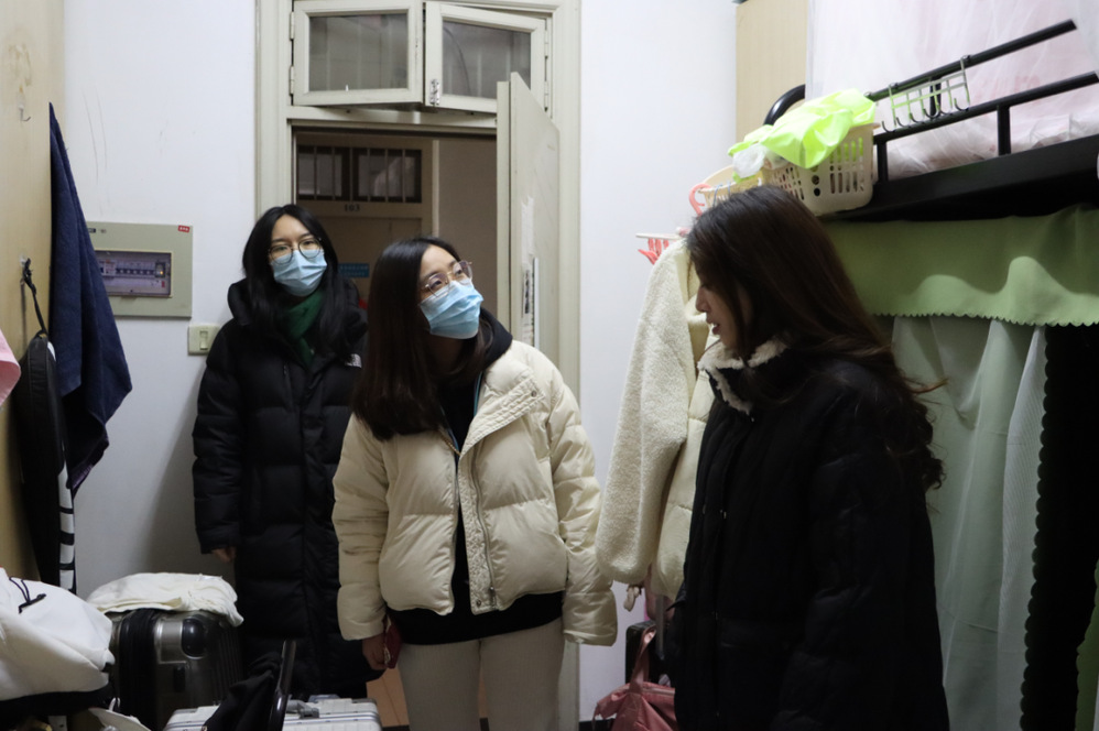 新学期伊始,春风和煦,华章又启。在学校的统一部署下,色情片 学生于近期有序返校。为深入了解同学们的返校情况和学期计划,学办主管王阳光、辅导员徐玉怡和占佳聪走访学生宿舍,为同学们送上新学期的暖心问候。