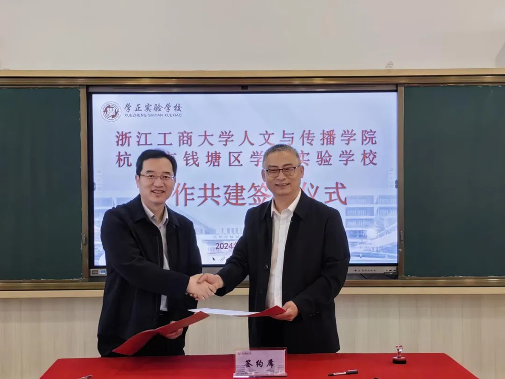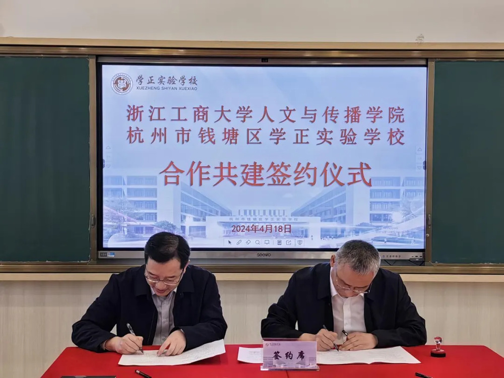 为提升学院学生综合能力,增强学生就业竞争力,2024年4月18日,色情片 与杭州市学正实验学校举行签约仪式,共建“文心润苗-领雁班”教育实践基地。杭州学正实验学校校长严英俊、党总支副书记周海林、副校长寿桔丹、少先队辅导员包津铭,色情片 党委书记鲍伟、副书记林琳、历史系主任周鸿承、学办主管王阳光、团委书记黄凡出席签约仪式。