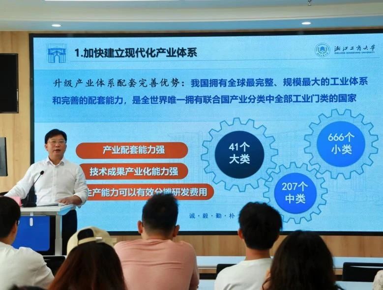 胡金生书记的党课紧扣时代脉搏,从“展现新图景,创造新形态”“拥抱新机遇,无畏新挑战”“锚定新目标,铸就新伟业”三个维度,分别为在场师生解释了中国式现代化的概念,说明了当前中国遇到的机遇和挑战,列举了坚持中国式现代化的举措。他通过对中国式现代化的全面解读,为师生们提供新时代宣传思想文化工作的新思路。