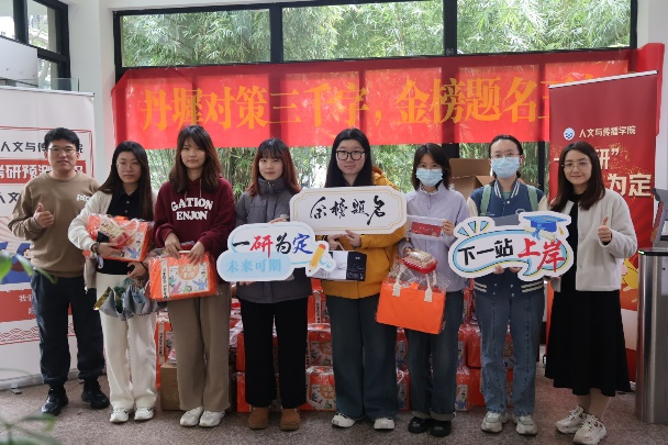老师们为同学们送上了礼物,并合影留念,同时慰问了考研同学们的生活作息和备考情况,特别嘱咐宿管阿姨在备考期间给予考研同学更多的关照。