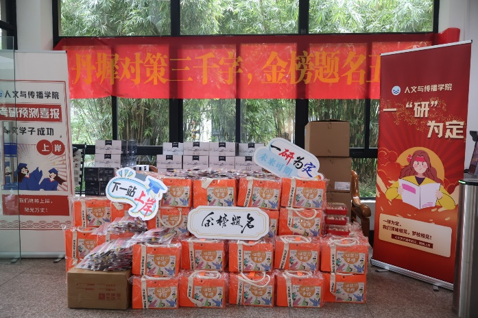 学院为每位考研学子准备了“考研大礼包”——定胜糕、纯牛奶、文具套装、心想事“橙”大礼包。还有鼓舞人心的立牌与横幅,饱含着学院对考研学子的深切关怀与真挚祝愿:希望每位同学在备考过程中劳逸结合、注意身体健康,以最佳的状态进入考场;也祝愿每位学子如愿以偿、成功上岸。
