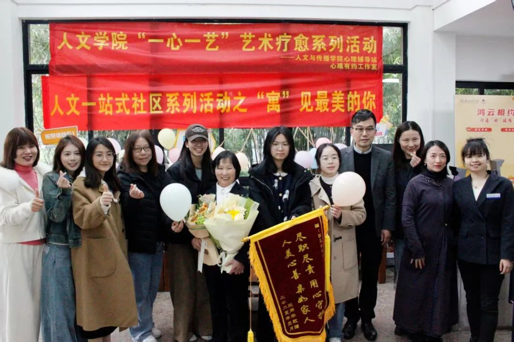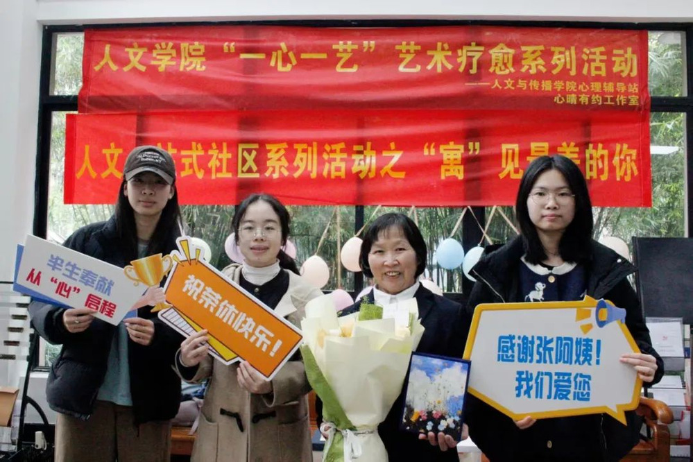 三月的风带着花香,也捎来离别的絮语。张阿姨——这位用光阴守护学子成长的“楼妈”,即将开启她人生的新篇章。为此,人文心理辅导站联合人文学生会,与楼栋师生们秘密筹备了一场“惊喜”,用一场温情满满的欢送会为她的职业生涯画上温暖的句点。